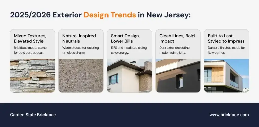 2025/2026 Exterior Design Trends in New Jersey: What’s In for Brickface, Stucco & Stone Veneer